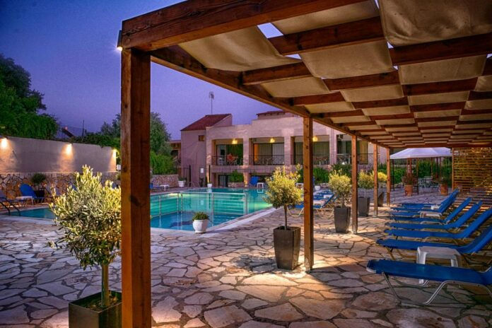 Вилата Зевс се наоѓа на 400метри од плажата во Ипсос, во мирниот дел на туристичкото место Пирги. Вилата Зевс е голем комплекс од два објекта кои се опкружени со природа, цвеќиња и зеленило, а во неговиот двор се наоѓа прекрасен базен и лежалки за гостите. Студијата располагаат со мини кујна, опремени со основен прибор, како и решо за готвење, телевизор, ви-фи интернет. Студијата располагаат и со клима уред кој може да се користи со доплата од 8 евра од ден во самата вила. Собите се наоѓаат на прв спрат, секоja со сопствена тераса и се комплетно реновирани. За секој патник следува по еден пешкир, додека основните лични средства за хигиена (шампон, сапуни, како и сунгерчиња, сјај за садови и тоалетна хартија) се ваша одговорност